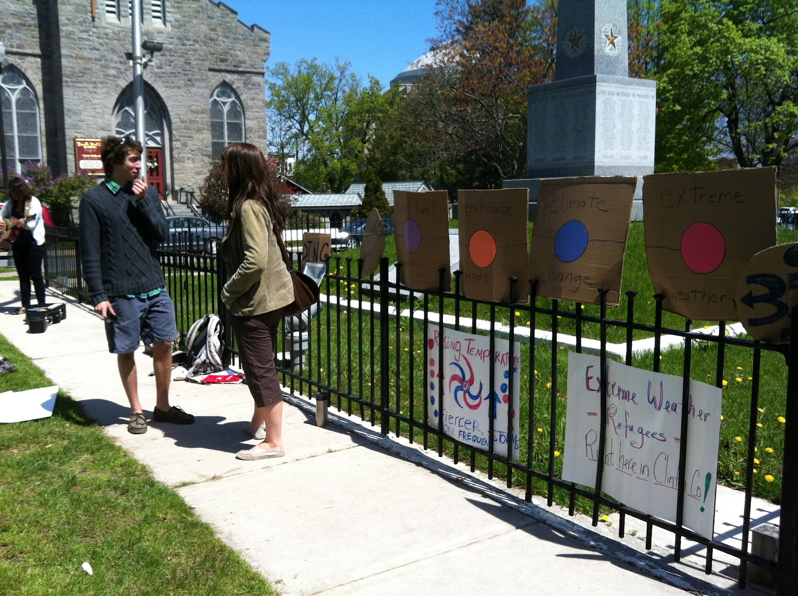 At noon today, Michelle, Will, and I went to downtown Plattsburgh to join together for Connect the Dots. It was organized in Plattsburgh by a friend of mine, Ross, to inform people to connect the dots between burning fossil fuels, climate change, and extreme weather patterns. People came from all around the area to talk about how Hurricane Irene affected their lives. It seems hard to believe that there are extreme hurricanes in New York and Vermont, especially upstate, but it is happening. Check out